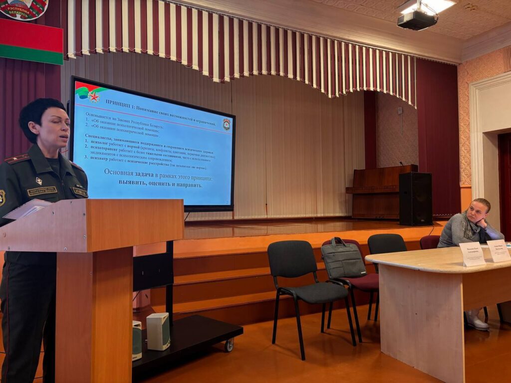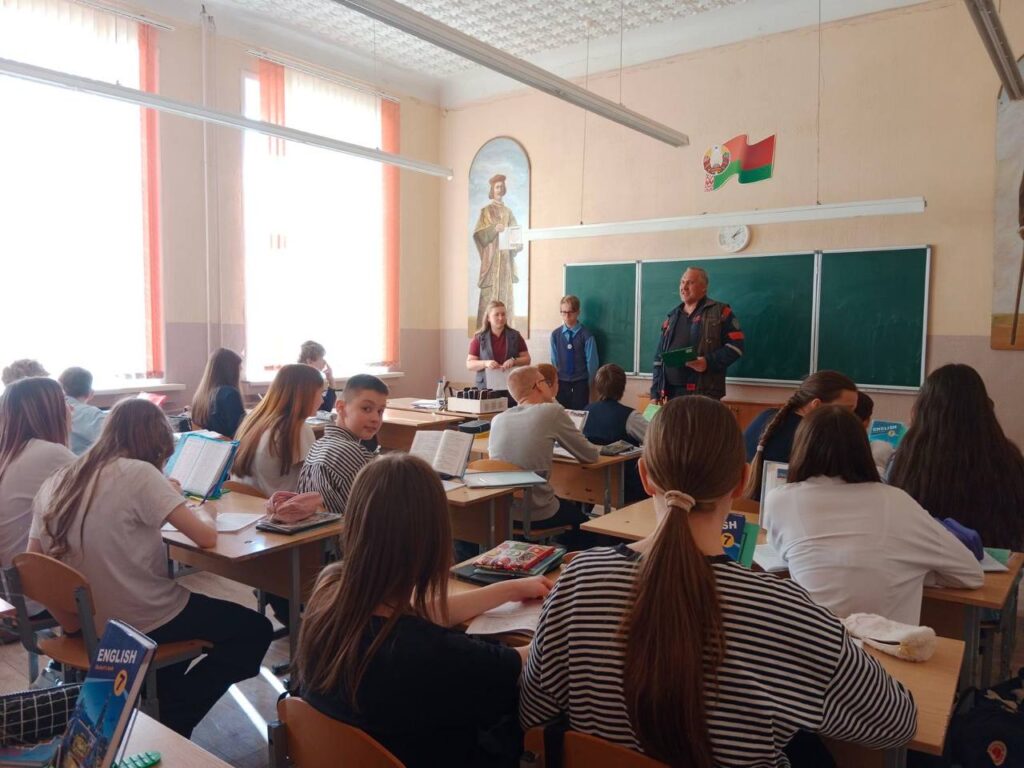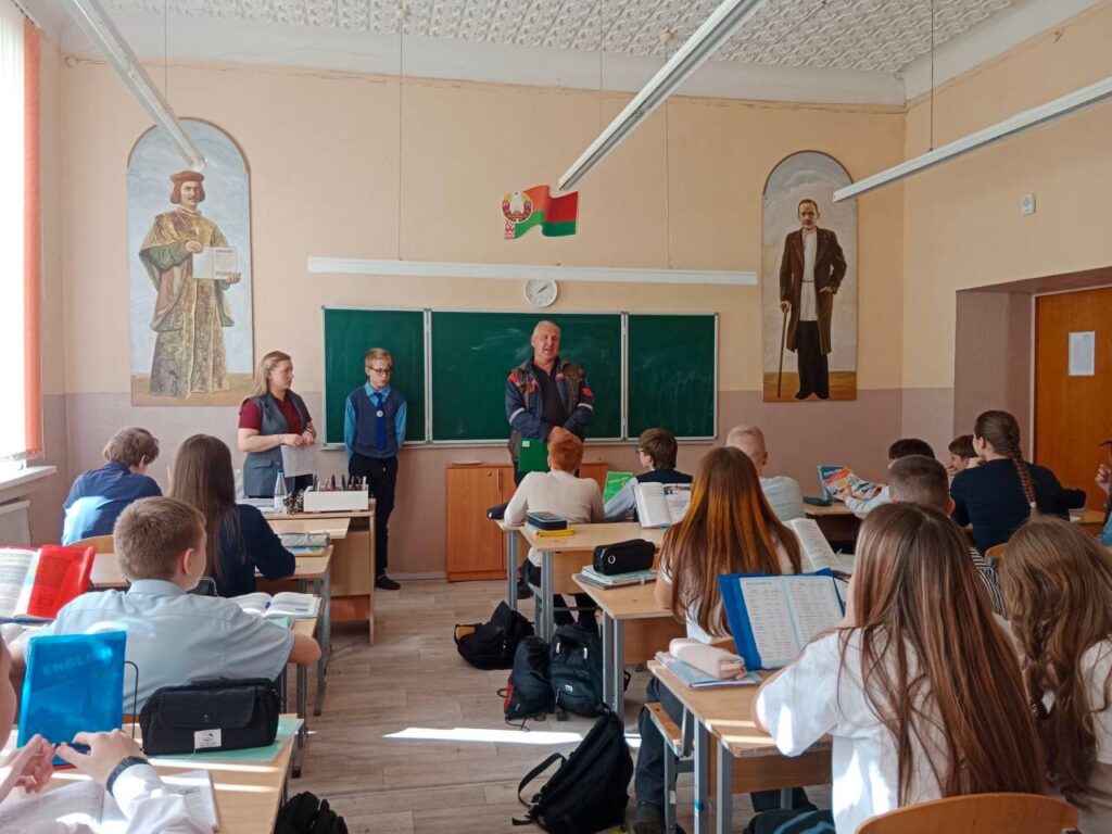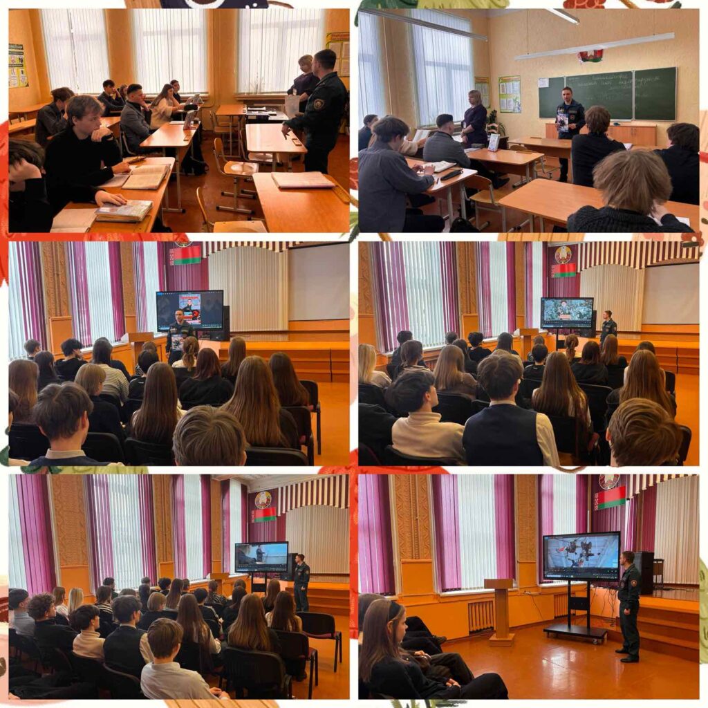 В рамках профориентационной работы перед учащимися 9-11 классов выступил начальник смены Гомельского ГОЧС МЧС РБ старший лейтенант Картузов К.С.